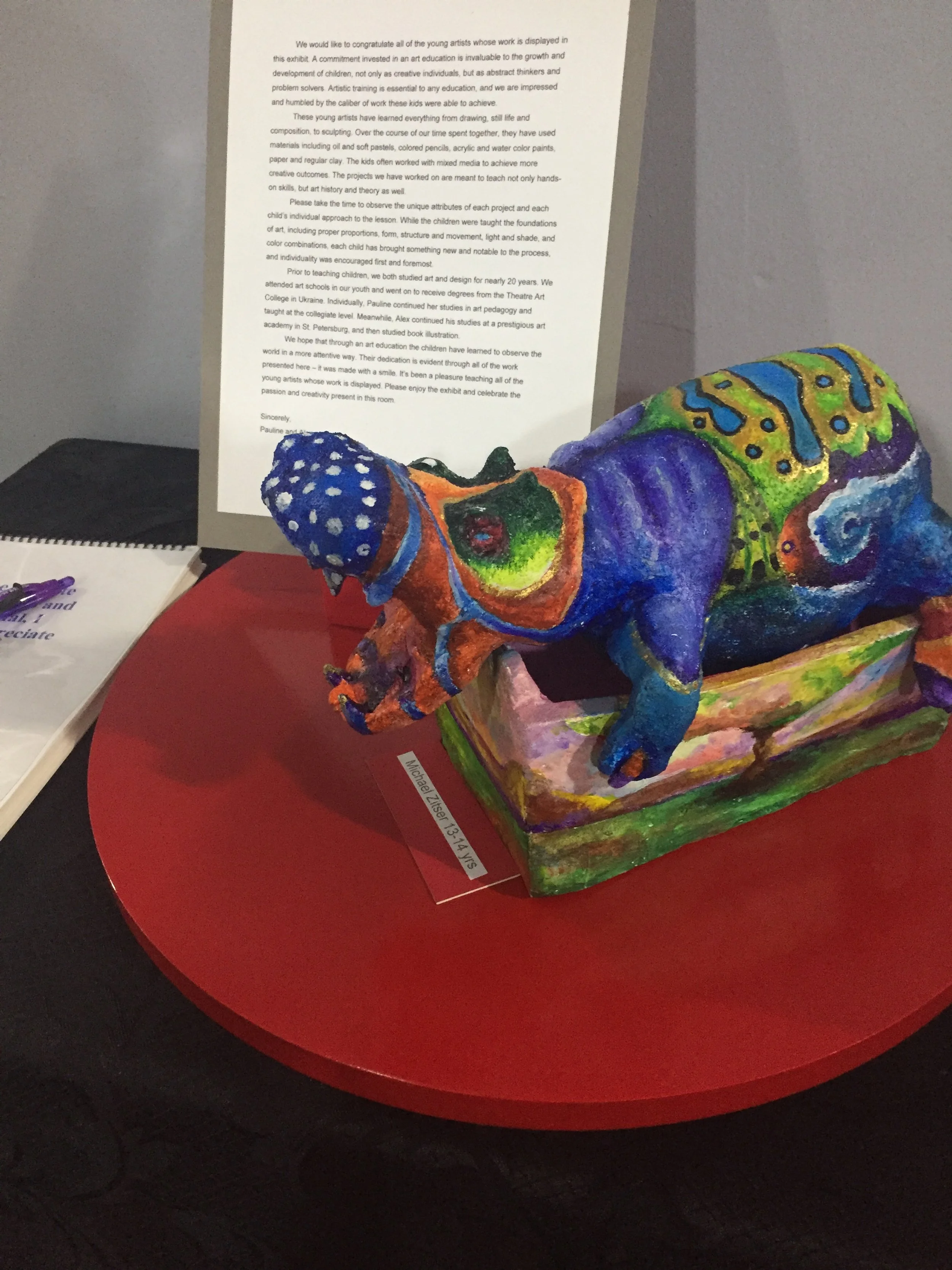 developing ideas and sketches, clay sculpting, preparation for firing, bisque firing, painting, glazing, and glaze firing